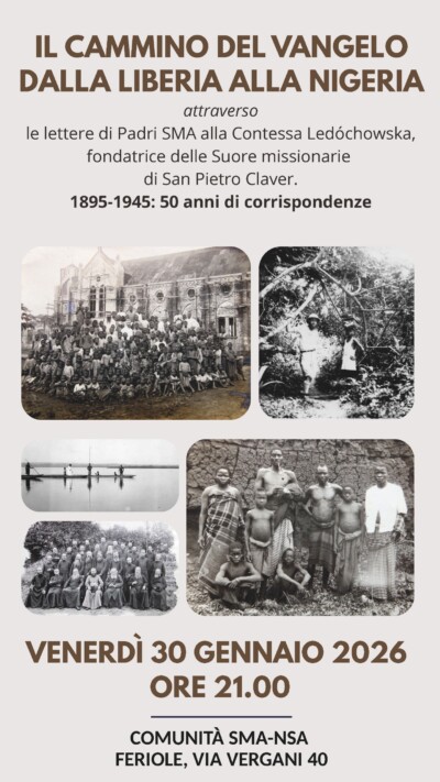 P. Renzo Mandirola presenterà “Il cammino del Vangelo dalla Liberia alla Nigeria” attraverso le lettere di padri SMA alla Contessa Maria Teresa Ledóchowska, fondatrice della Congregazione delle Suore Missionarie di San Pietro Claver.